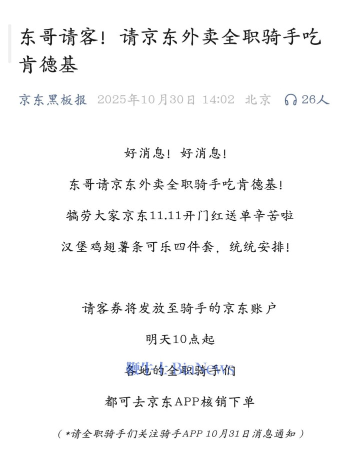 京东双11中也有京东外卖的身影。最近刘强东还特意请京东外卖全职骑手吃肯德基,犒劳他们在京东11.11开门红期间送单辛苦。