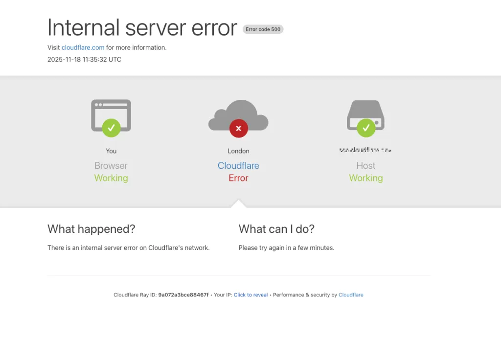 当地时间11月18日,互联网基础设施巨头Cloudflare发生服务中断,导致全球多家主要网站无法访问。